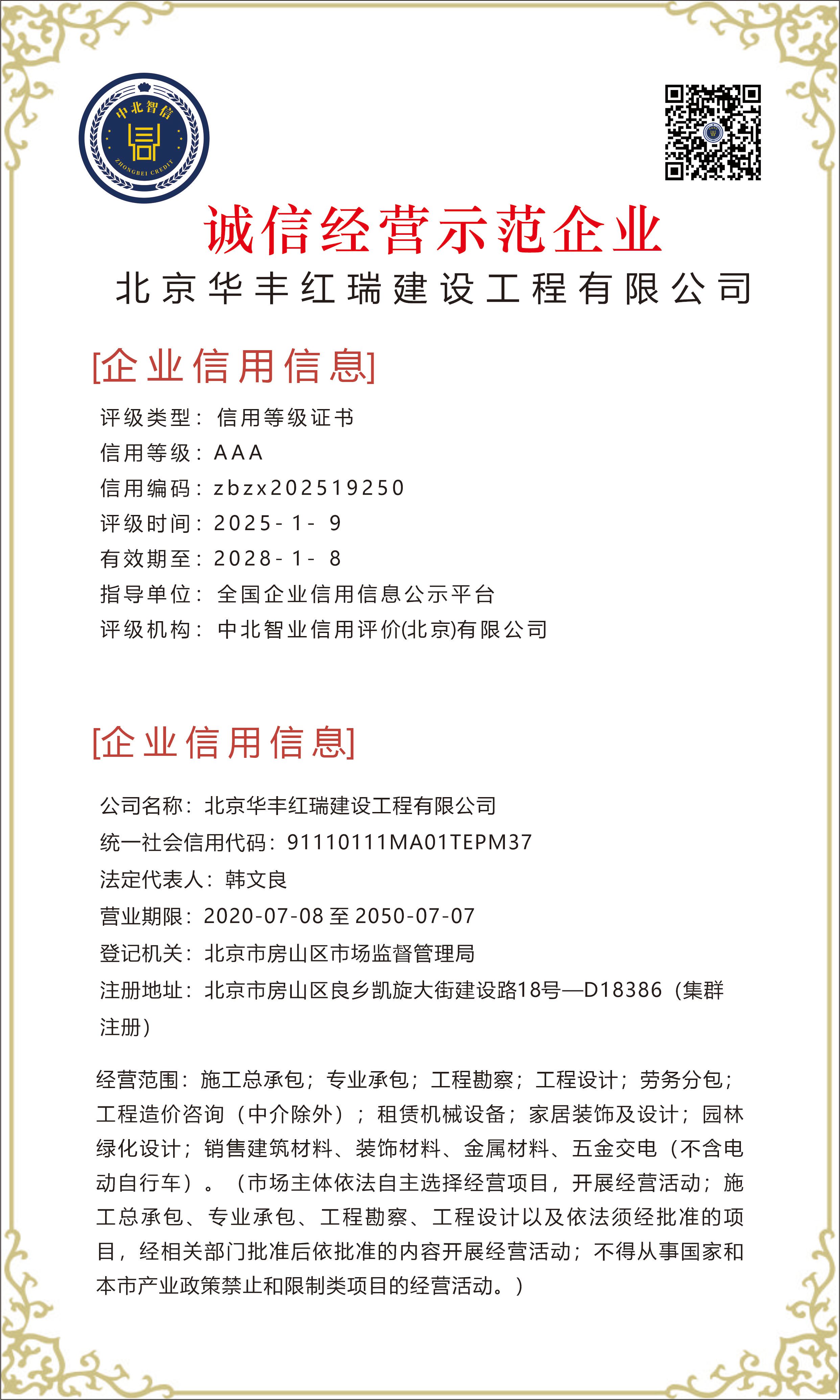 北京华丰红瑞建设工程有限公司——【诚信经营示范企业】