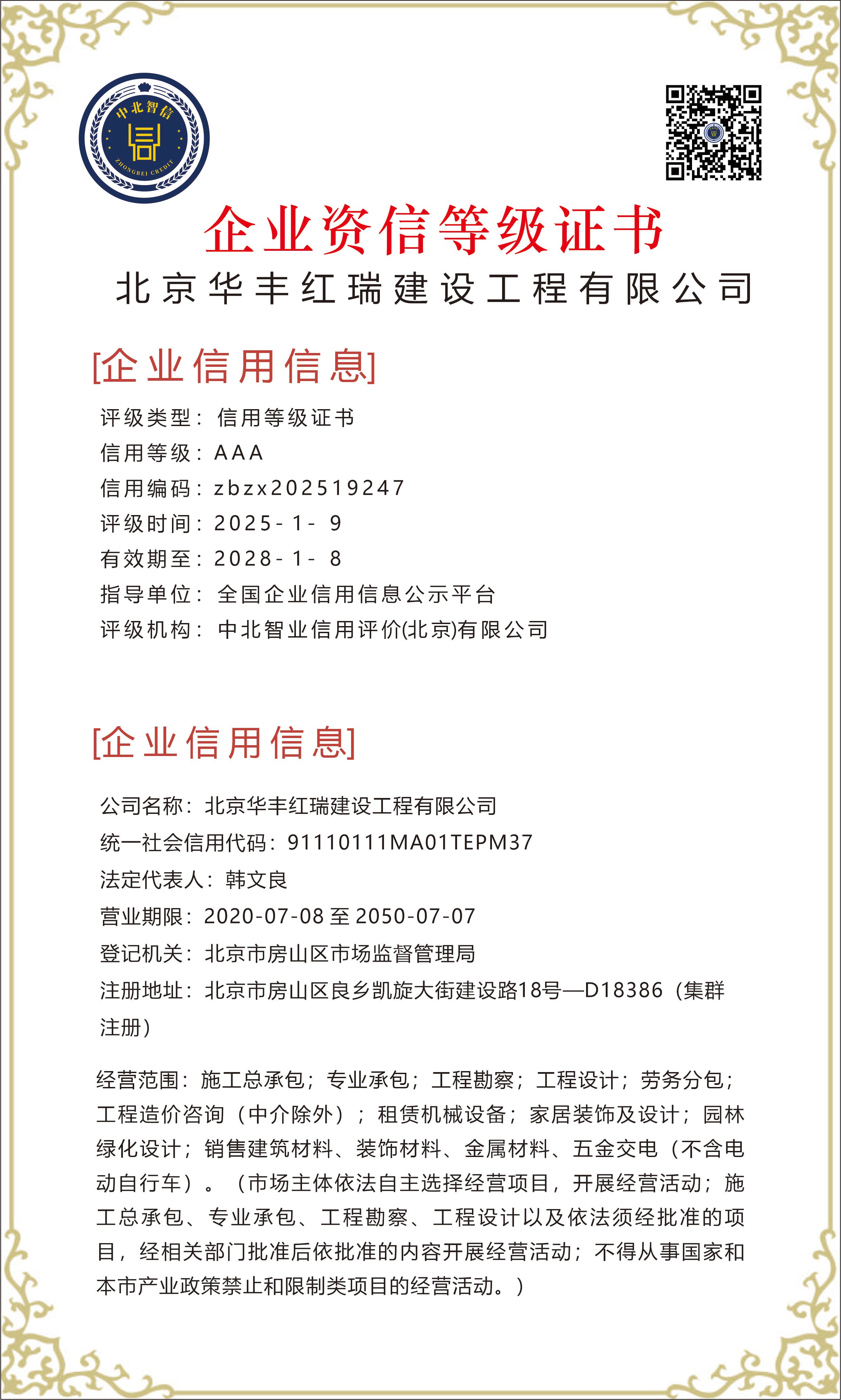 北京华丰红瑞建设工程有限公司——【企业资信等级证书】