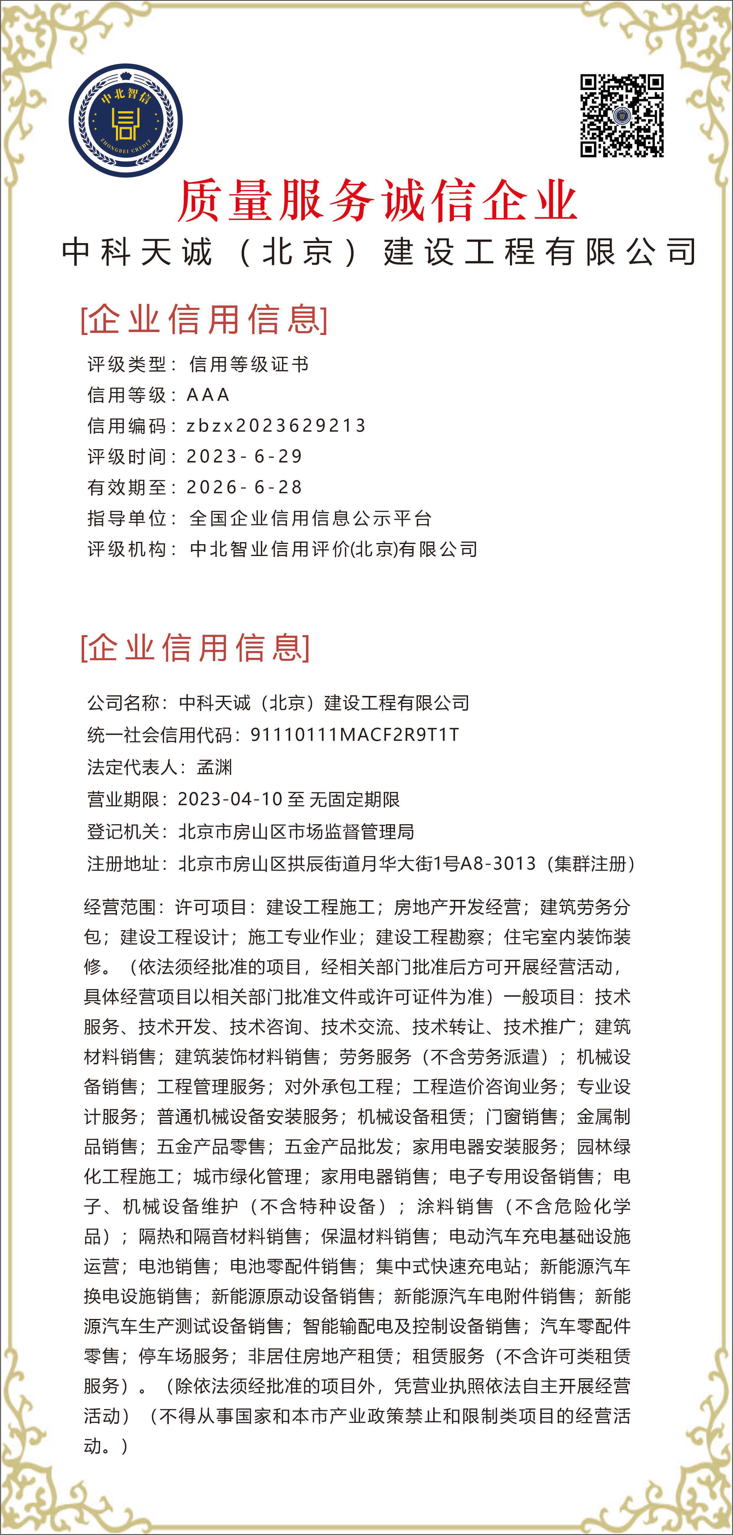中科天诚(北京)建设工程有限公司——【质量服务诚信企业】