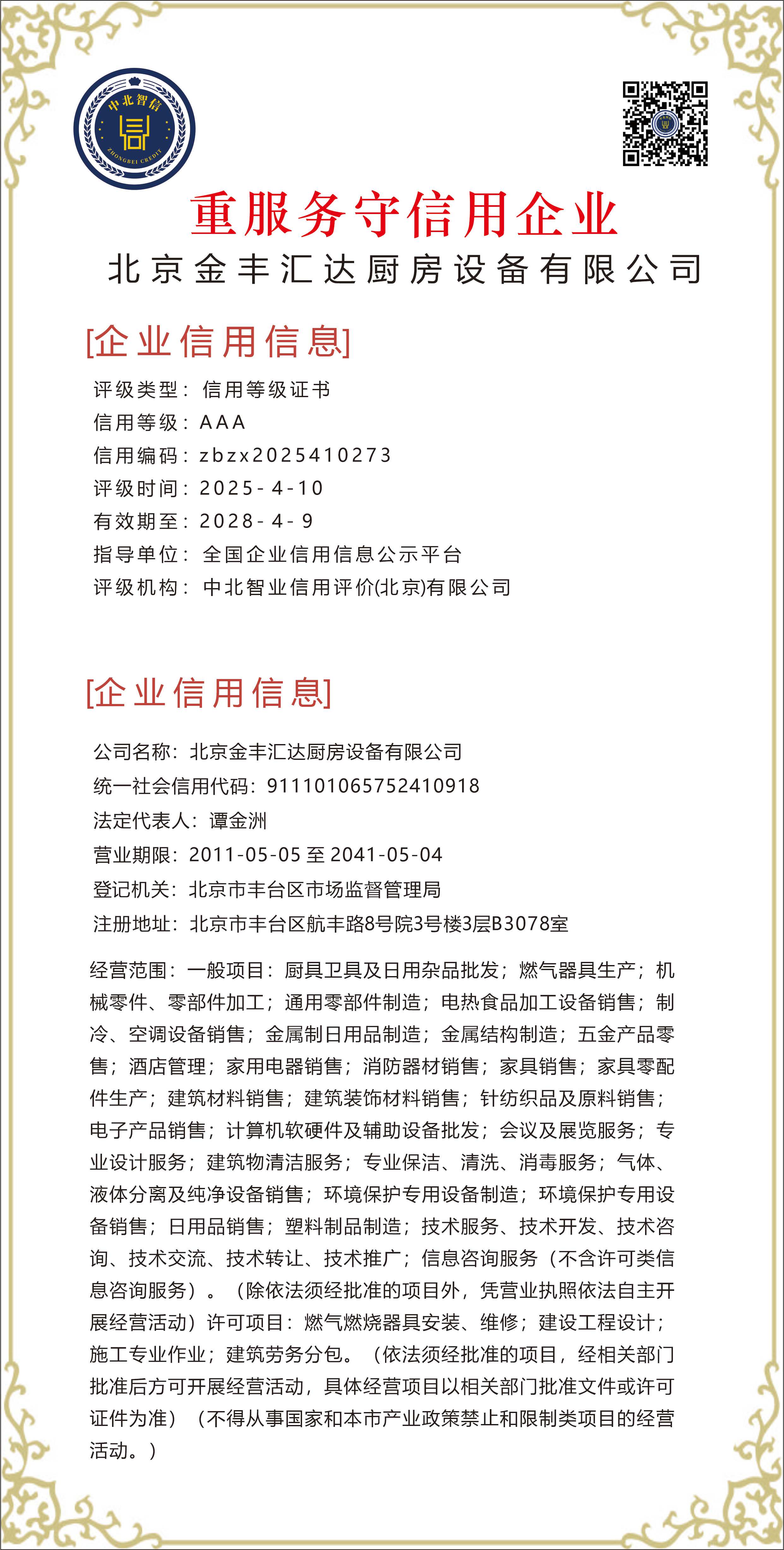 北京金丰汇达厨房设备有限公司——【重服务守信用企业】