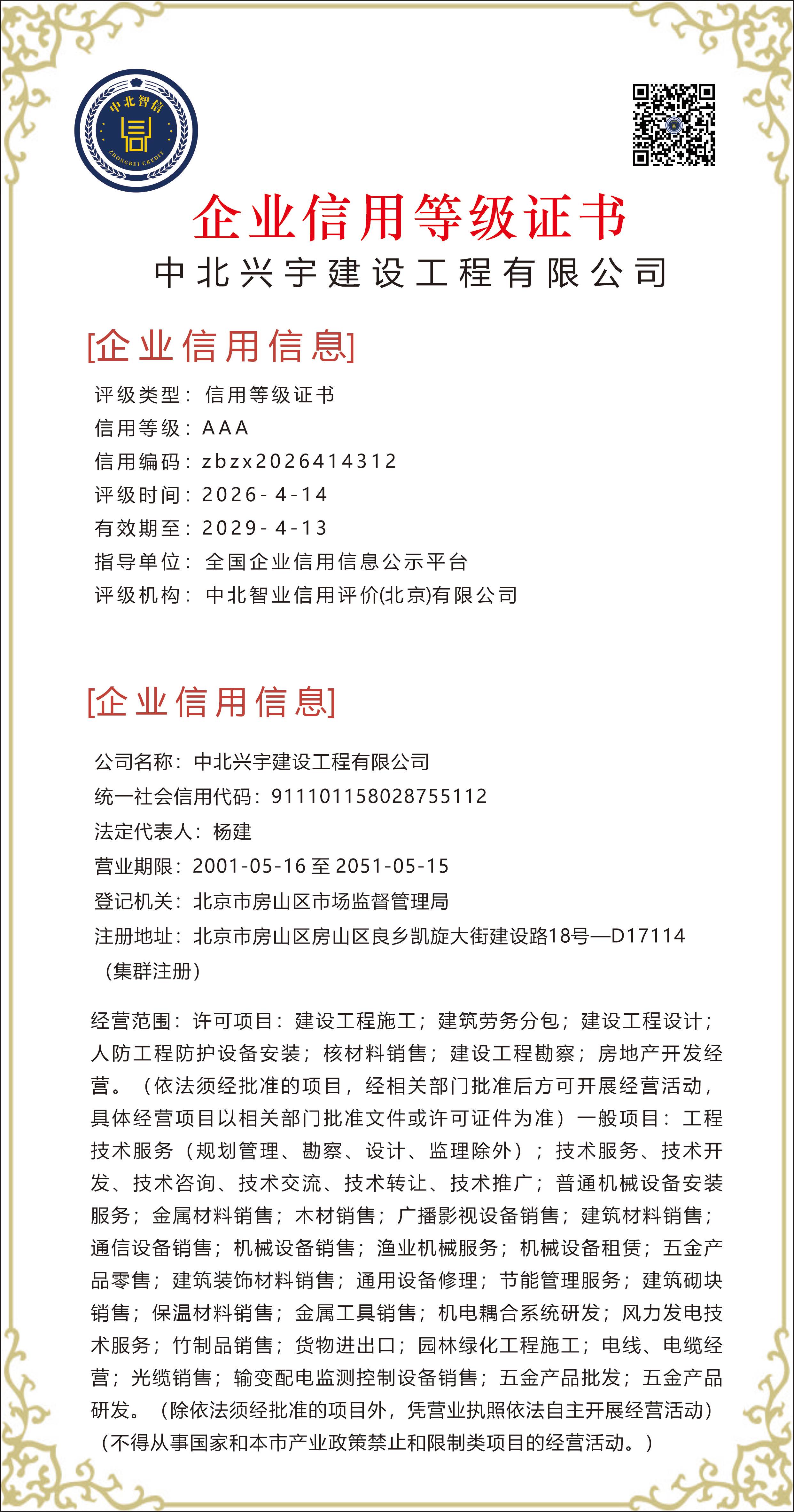 中北兴宇建设工程有限公司——【企业信用等级证书】