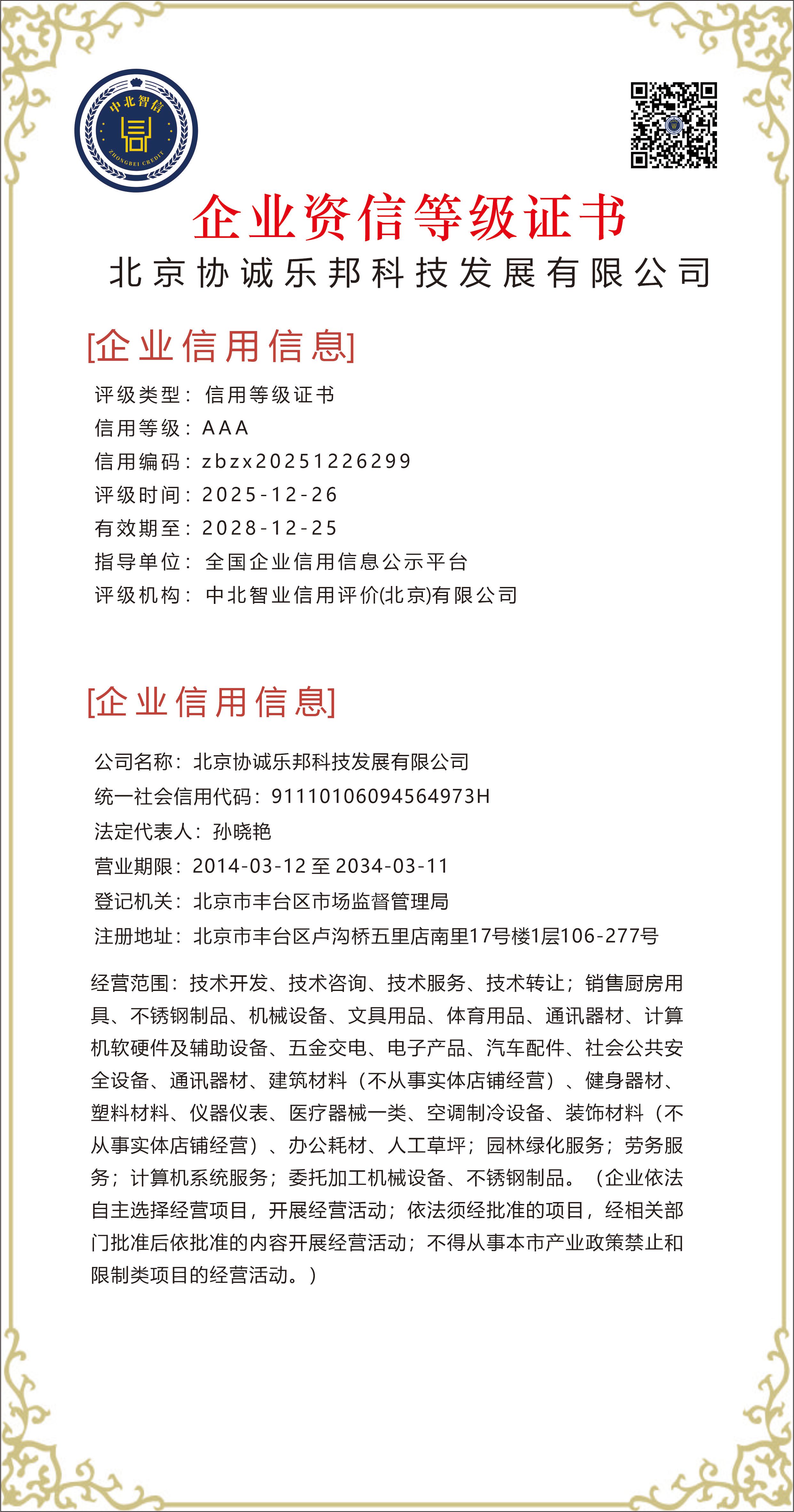 北京协诚乐邦科技发展有限公司——【企业资信等级证书】