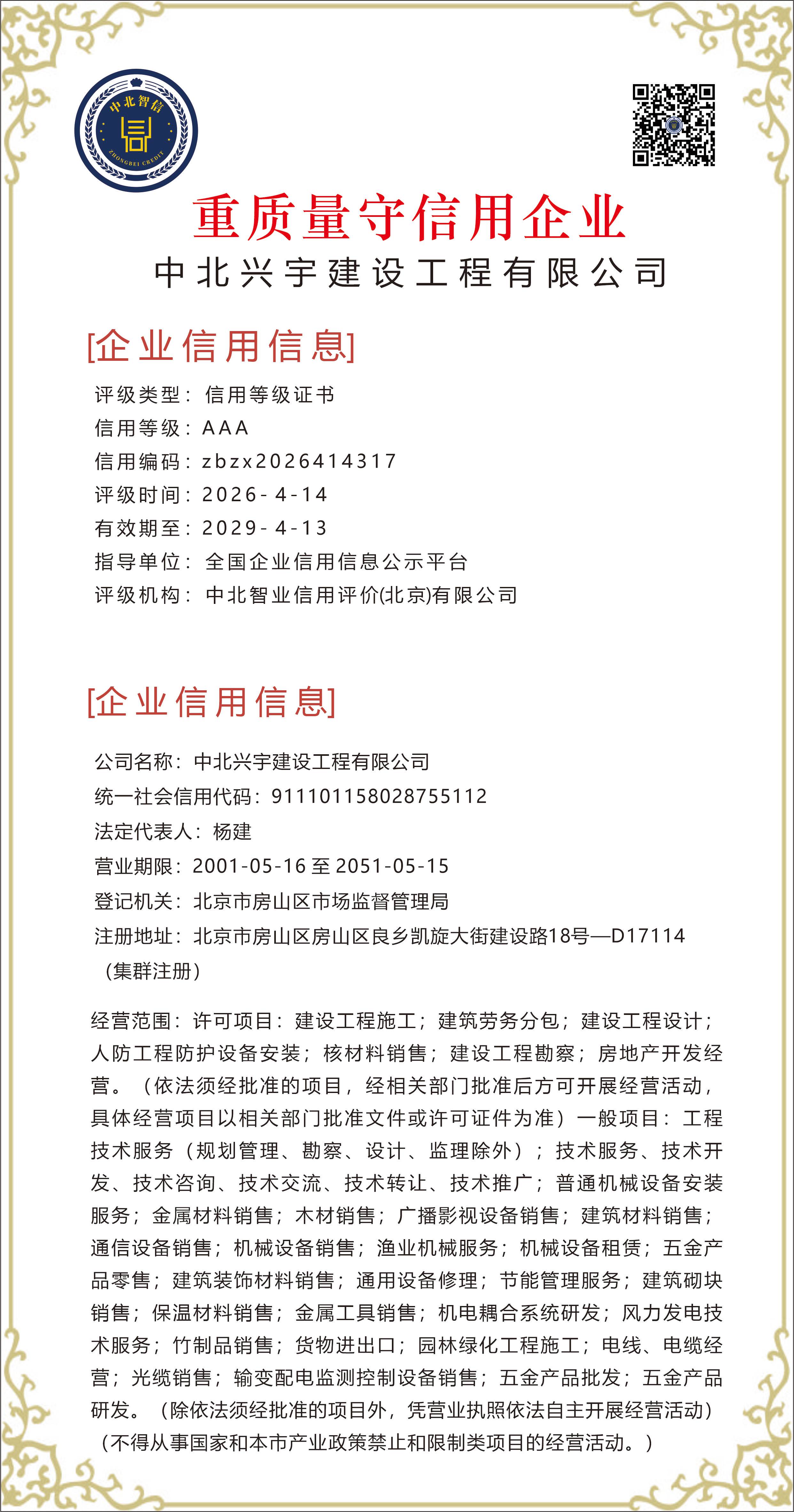 中北兴宇建设工程有限公司——【重质量守信用企业】